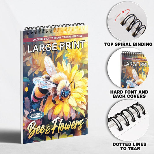 LBKHOUSE Large Print Bees and Flowers Coloring Book for Adult, Spiral Bound, Soft Cover