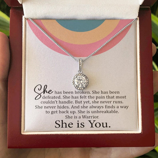 Daughter Wife Necklace Gift She is You - She has broken, she has been defeated. She is unbreakable. She is a Warrior Eternal Hope Necklace LX069B