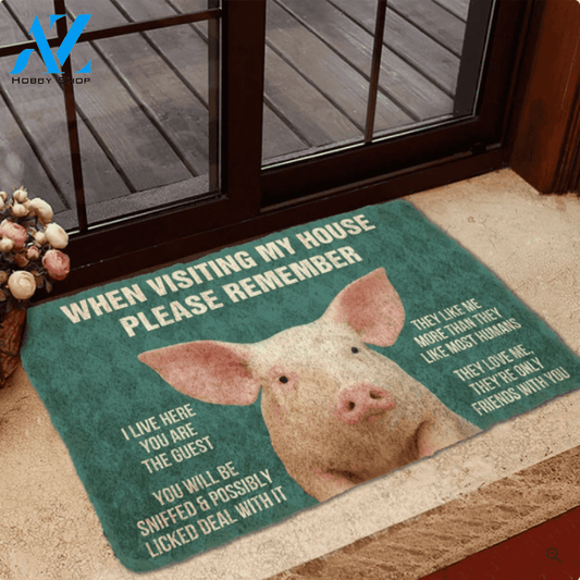 Please Remember Pigs House Rule Funny Indoor And Outdoor Doormat