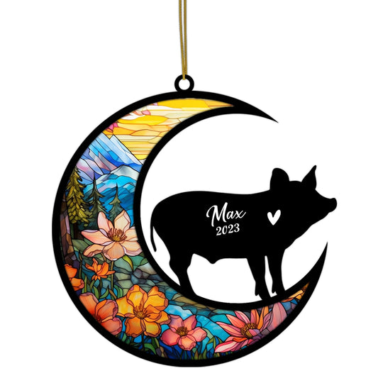 Pig Memorial Suncatcher, Pet Loss Suncatcher, Bereavement Pig Loss Gift Personalized with Name Suncatcher Gifts for Pig Lovers Hanging Ornaments for Xmas, Car, Window Decoration