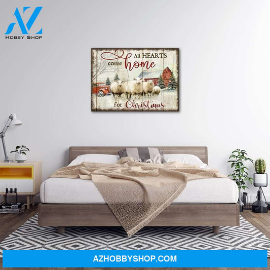 Farmhouse Decor All Hearts Come Home For Christmas Sheeps Canvas Wall Art