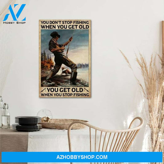 Custom Canvas You Get Old When You Stop Fishing Vertical Poster, Vintage Fishing Poster, Gift For Fisherman, Fathers Day Gift