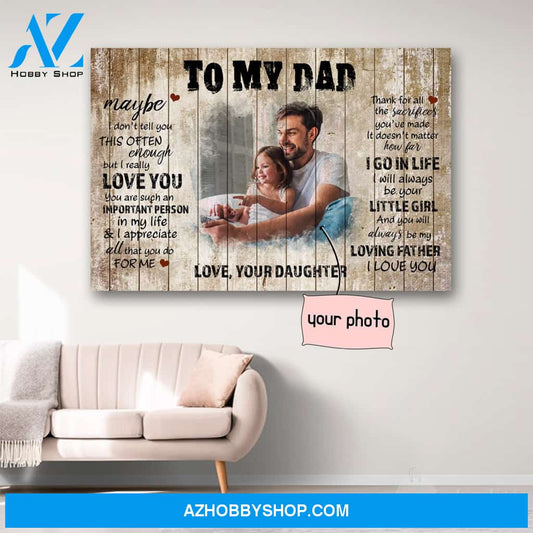 Personalized Photo To My Dad From Daughter Canvas Print Wall Art - Matte Canvas