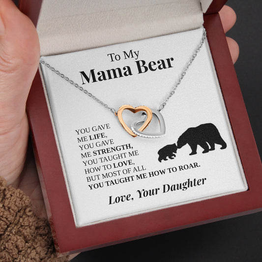 To My Mama Bear "Mama Bear" Interlocking Hearts Necklace