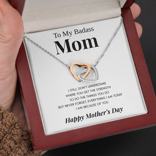 Interlocking Hearts Necklace- To My Badass Mom Everything I Am Gift For Mom, For Birthday, Christmas, Mother's Day