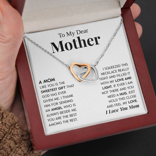 To My Dear Mother "The Sweetest Gift" Interlocking Hearts Necklace