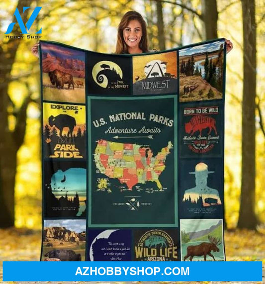 National Parks Map US Camping Hiking Outdoor Fleece Blanket Gift For People