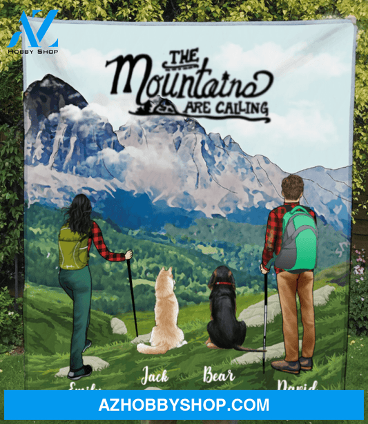Personalized Dog & Owners Hiking Blanket, Gift idea for the whole family, dog lovers The Mountains Are Calling Blanket