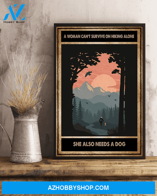 Hiking Dog Loves Poster A Woman Can Not Survive On Hiking Alone Vintage Poster Canvas