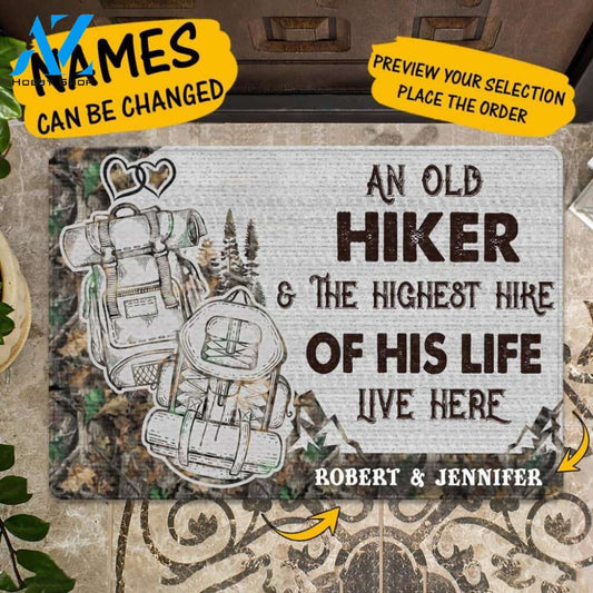 Hiking An Old Hiker Live Here Custom Doormat | Welcome Mat | House Warming Gift
