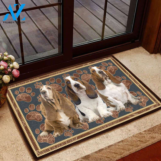 Basset Hound Floral Paw - Dog Doormat Welcome Mat House Warming Gift Home Decor Gift for Dog Lovers Funny Doormat Gift Idea