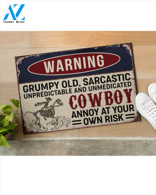 Warning Cowboy Annoy At Your Own Risk Indoor And Outdoor Doormat Welcome Mat Housewarming Gift Home Decor Funny Doormat Gift Idea