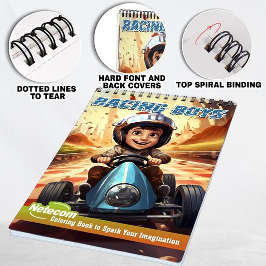 Racing Boys Spiral Bound Coloring Book, Engage with 30 Captivating Racing Boys Coloring Pages for an Adrenaline-Fueled Experience