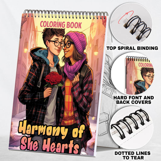 Harmony of She Hearts Spiral Bound Coloring Book: 30 Captivating Coloring Pages, Where Lesbian Couples Share Their Heartwarming Stories on Every Page.