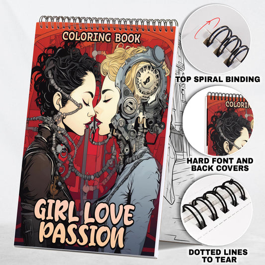 Girl Love Passion Spiral Bound Coloring Book: 30 Captivating Coloring Scenes of Passionate Couples.