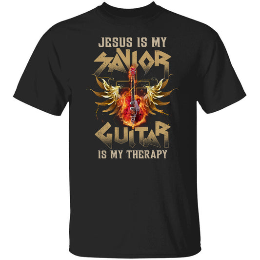 Rock, Guitar on fire, Jesus is my savior, Guitar is my therapy - Jesus Apparel