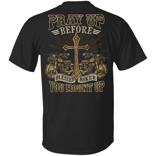 Jesus - Blessed Biker - Pray up before you mount up - Back-printed Apparel