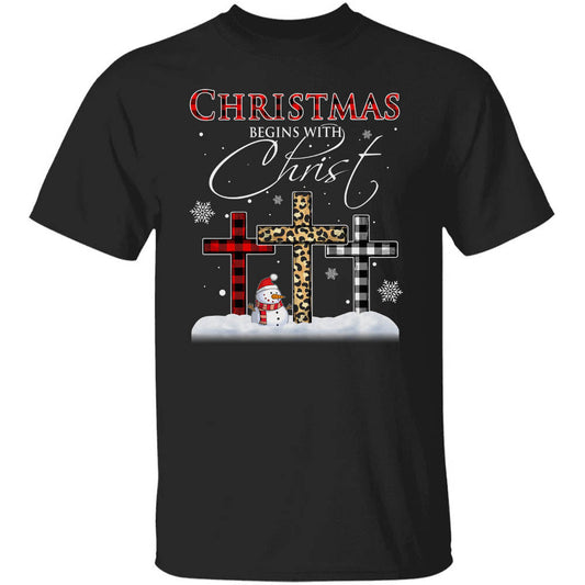 Cross, Snowman, Christmas begins with Christ - Jesus Apparel