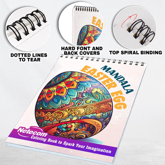 Mandala Easter Egg Spiral Bound Coloring Book, Capture the Essence of Easter with 30 Mandala Easter Egg Coloring Pages, Portraying Intricate Patterns Symbolizing Rebirth