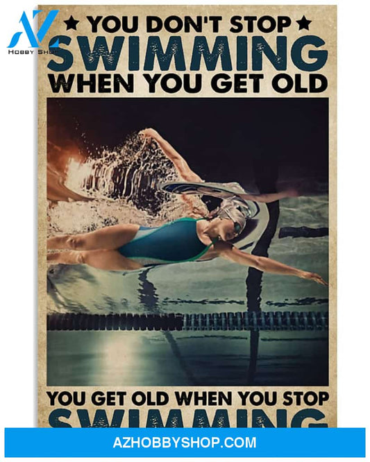You Get Old When You Stop Swimming Vertical Canvas Decor