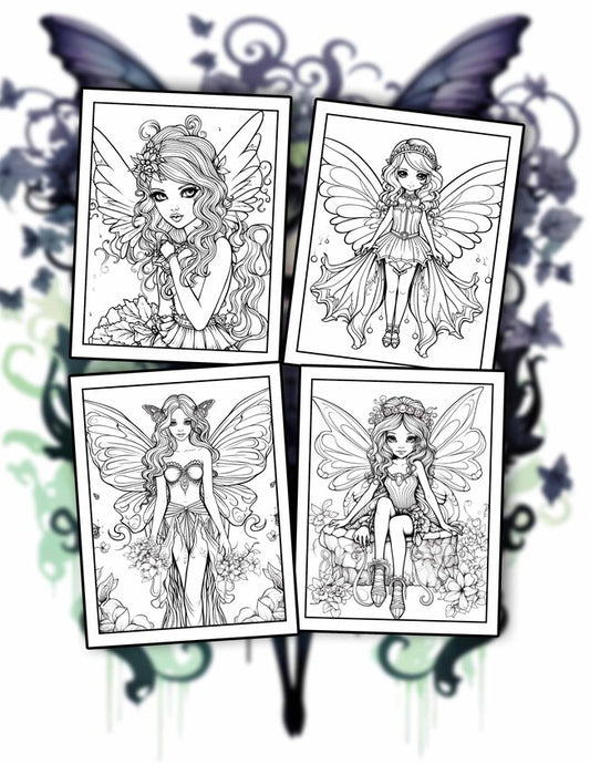 Goth Fairies 30 Pages Printable Coloring Book