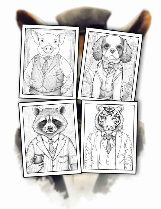 Gentleman Animals 30 Pages Printable Coloring Book