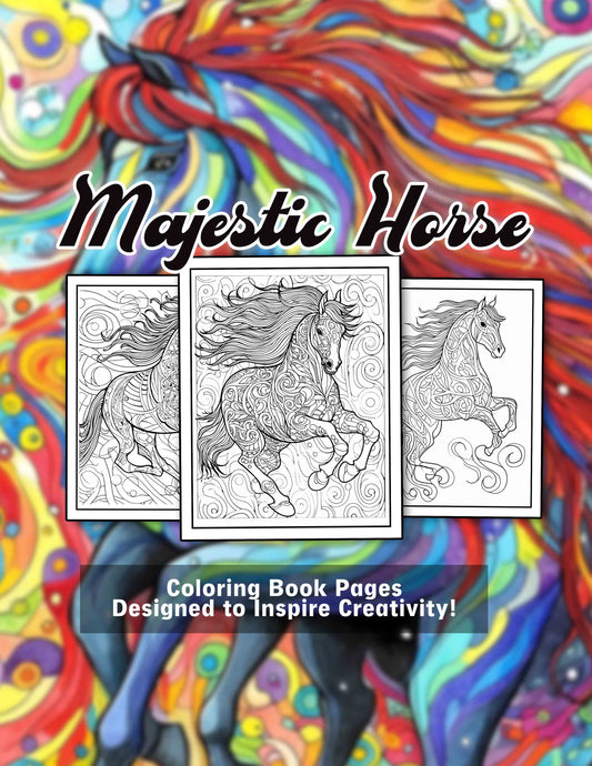 Majestic Horse 30 Pages Printable Coloring Book