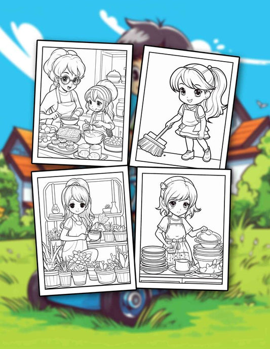 Kids Do Housework 30 Pages Printable Coloring Book