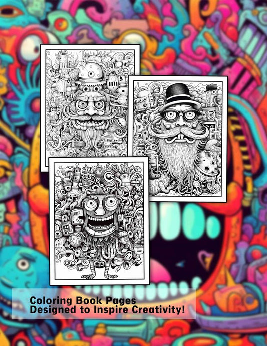 Doodles Hipster Monster 30 Pages Printable Coloring Book