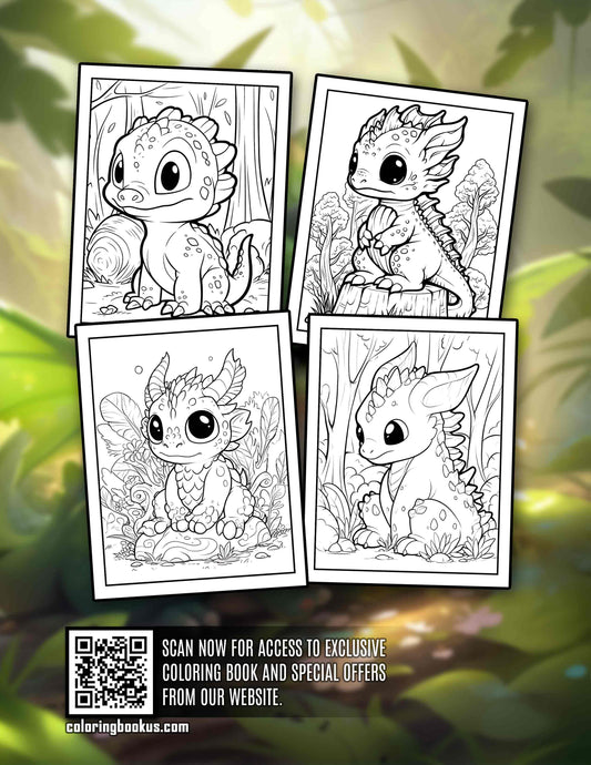 Baby Woodland Dragon 30 Pages Printable Coloring Book