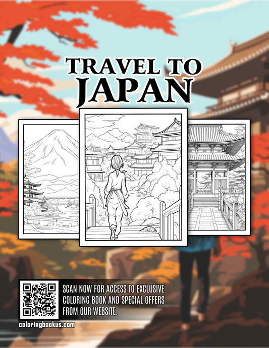Travel to Japan 30 Pages Printable Coloring Book