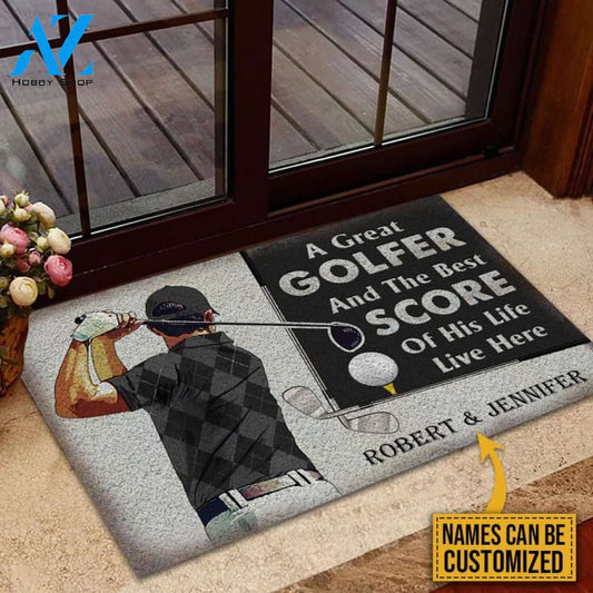 Personalized Golf Color Couple Golfer Best Score Live Customized Doormat | WELCOME MAT | HOUSE WARMING GIFT