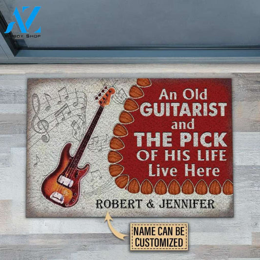 Personalized Bass Guitar Old Couple Live Here Customized Doormat | WELCOME MAT | HOUSE WARMING GIFT