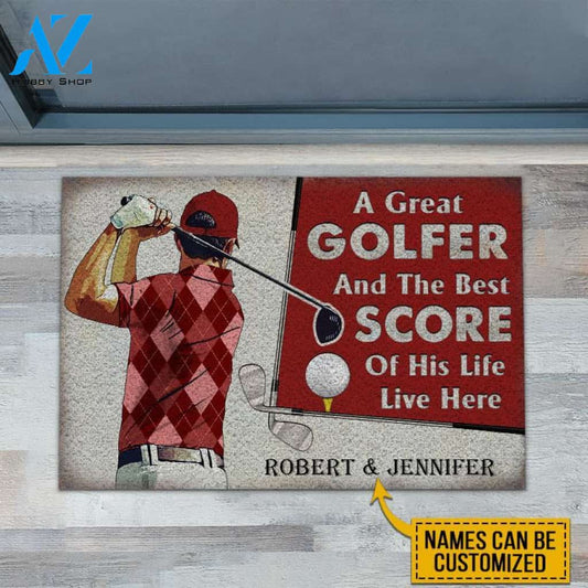 Personalized Golf Red Couple Golfer Best Score Live Customized Doormat | WELCOME MAT | HOUSE WARMING GIFT