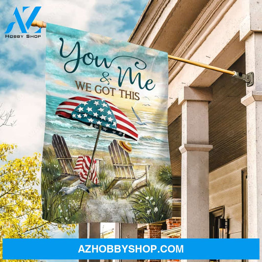 Beach umbrella, USA flag, Sunrise ocean, We got this - Couple Flag
