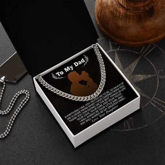 Necklace for Dad From Daughter, You Will Always Be My Greatest Hero, Birthday Gift, Father's Day Gift for Dad, Cuban Link Chain Necklace