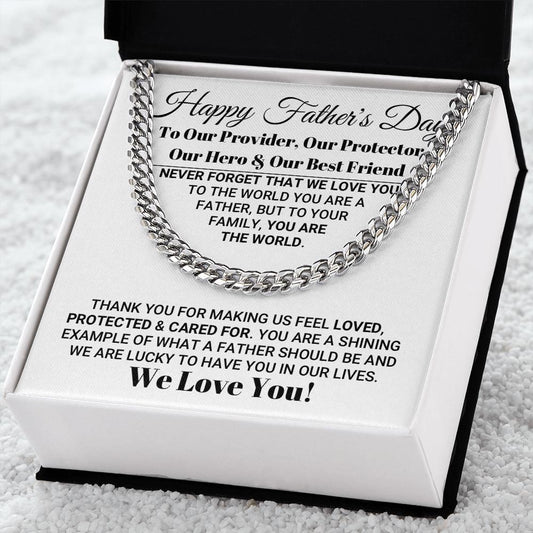 Our World Father's Day Necklace, Necklace for Father, Father's Day Gift, Best Gift idea for Father, Cuban Link Chain Necklace