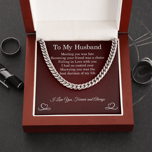 To My Husband Necklace - Meeting You Was Fate, Perfect Gift for Idea, Birthday Gift, Anniversary, Father's Day Gift, Cuban Link Chain Necklace