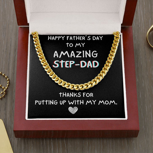 Happy Father's day To My Step Dad Necklace Gift | Thanks for putting up with my mom Cuban Link with Luxury Box from Step Daughter - Bonus Dad Father Gift LX132A