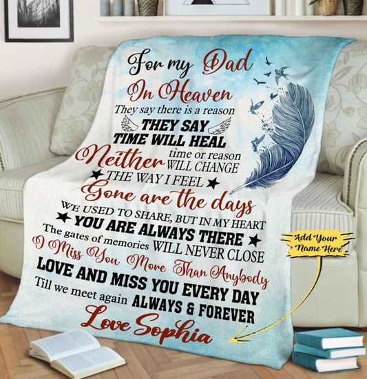To My Dad In Heaven Love And Miss You Every Day Peronalized Memorial Blanket Gift for Dad Father's Day
