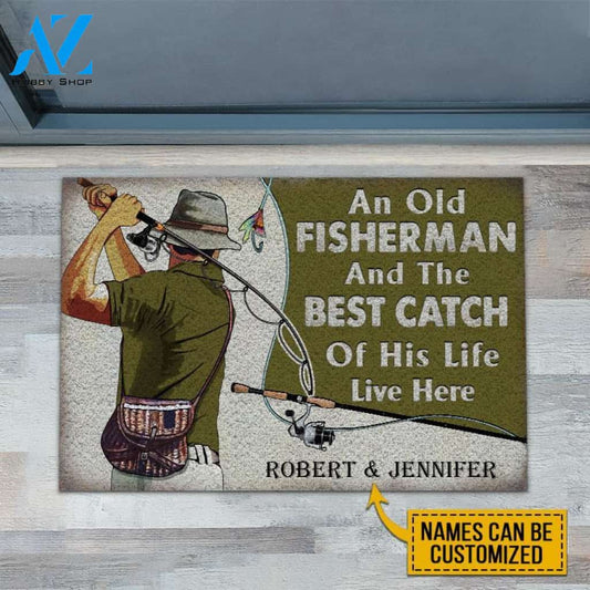 Personalized Fishing Old Couple The Best Catch Live Here Customized Doormat | WELCOME MAT | HOUSE WARMING GIFT
