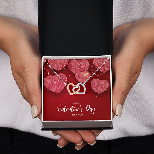 Happy Valentine's Day Interlocking Hearts Pendant Necklace Gift For Mom, necklace For Wife, Gift For Mother's Day