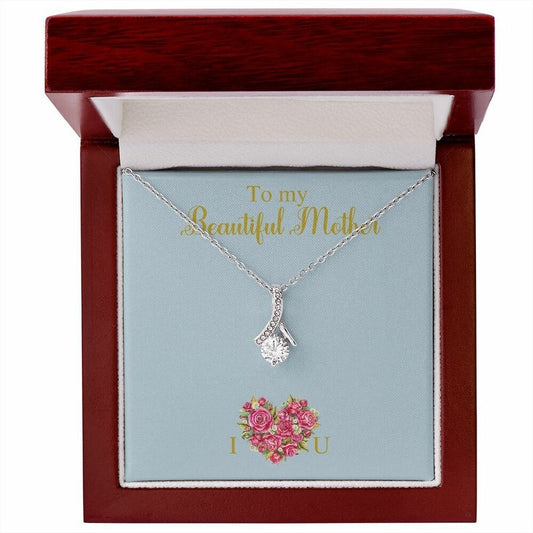 Alluring Beauty Necklace for Mom, Heart Shape Flowers, With Message Card, Mother's Day Gift, To My Beautiful Mother, I Love You