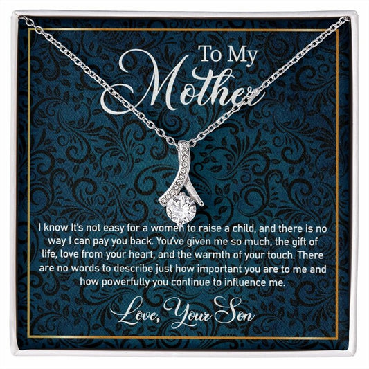 Alluring Beauty Necklace for Mom, Message card, Blue Flower Pattern, Mother's Day Gift, To My Mom From Daughter, Son