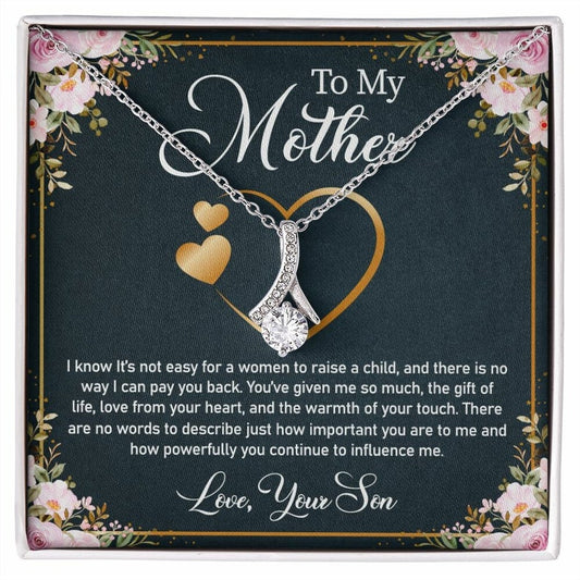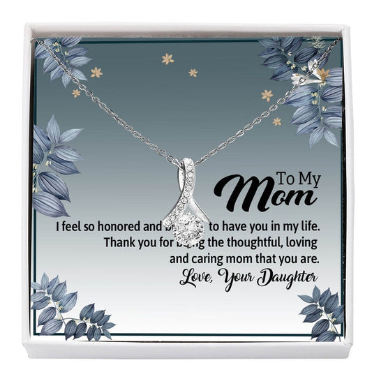 Alluring Beauty Necklace, Gift For Mom, With Message Card, Black Background, Flowers Pattern Corner, Mother's Day Gift, To My Mom From Daughter Son