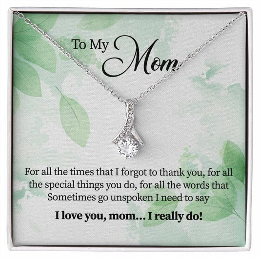 Alluring Beauty Necklace, Gift for Mom, With Message Card, Green Leaves Pattern, Mother's Day Gift, I Love You Mom, I Really Do