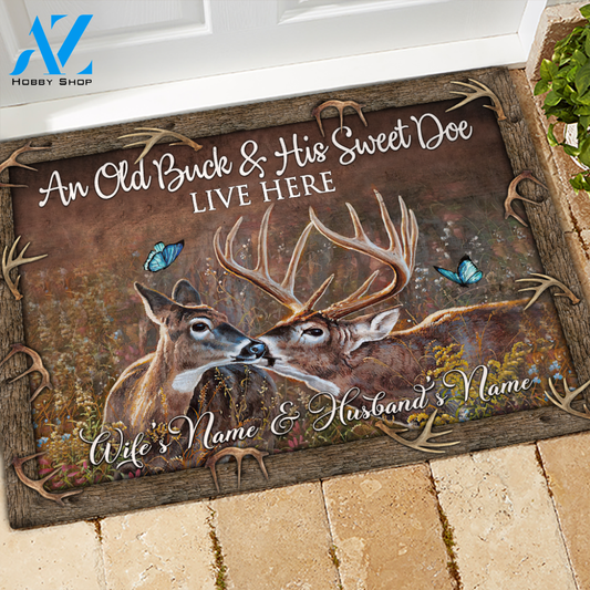 Hunting Doormat Customized Name An Old Buck And His Sweet Doe Live Here | WELCOME MAT | HOUSE WARMING GIFT