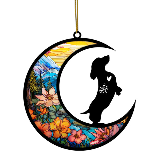 Personalized Dachshund Memorial Suncatcher Dachshund Christmas Ornament with Name Date Pet Loss Stained Glass Light Catcher Bereavement Gift Dog Memorial Ornament Loss of Pet Sympathy Gift