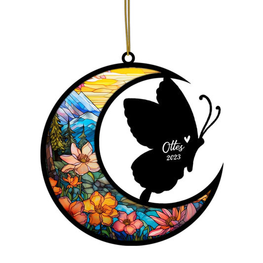 Butterfly Memorial Suncatcher, Pet Loss Suncatcher, Bereavement Butterfly Loss Gift Personalized with Name Suncatcher Gifts for Butterfly Lovers Hanging Ornaments for Xmas, Car Decoration