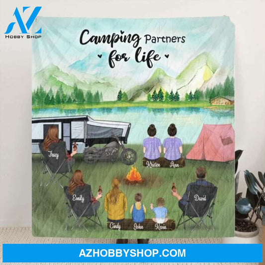 Custom Personalized Camping Blanket Gift for Whole Family, Camping Lovers Camping Partners For Life Blanket